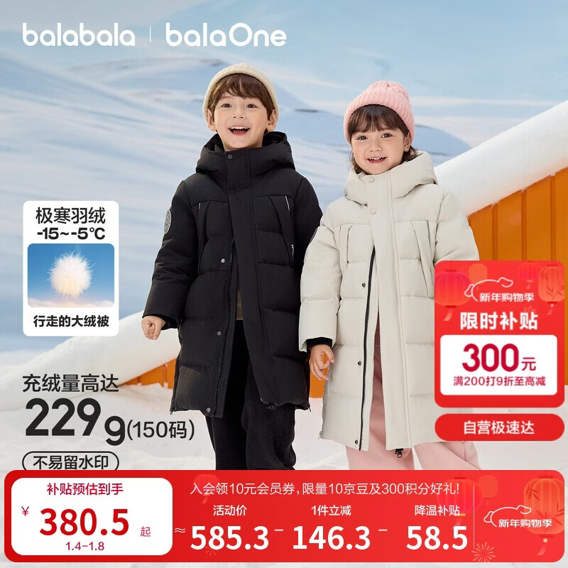 巴拉巴拉儿童羽绒服中长款冬加厚外套男女童2025连帽亲子装保暖防风防泼水