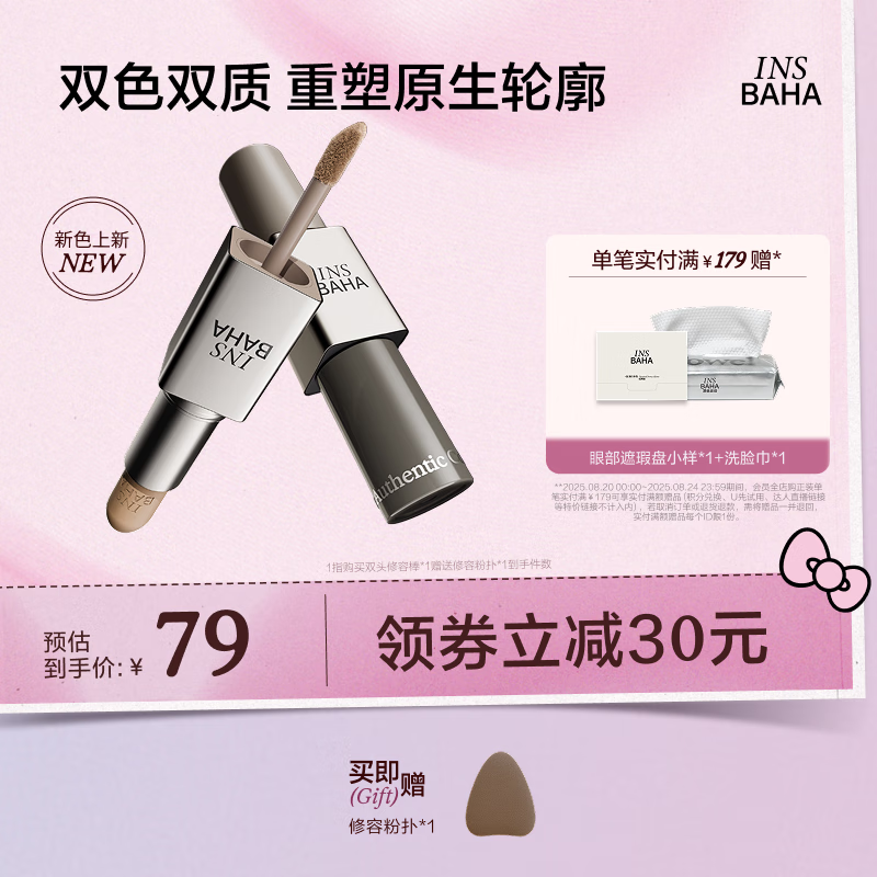 原色波塔(INSBAHA)原色建构双效修容棒遮瑕提亮哑光阴影鼻影改善面部凹陷七夕礼物 01原生麦【适配亚洲黄调皮】