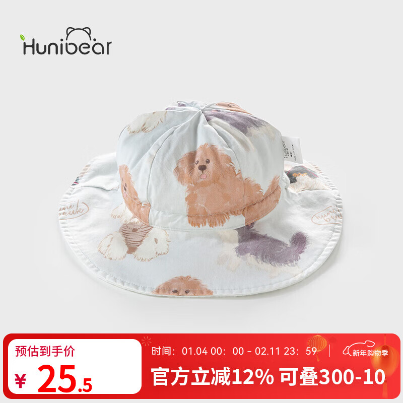 欢喜小熊婴儿春夏季纯棉帽子宝宝渔夫帽夏天遮阳帽新生儿太阳帽 狗狗星球 均码(48-52cm)