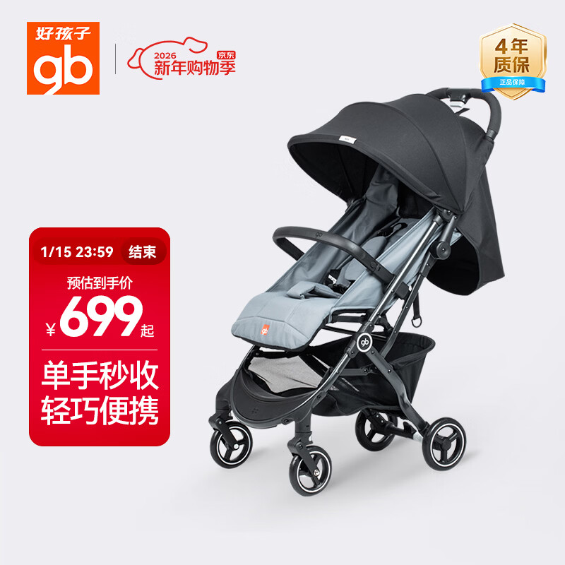 好孩子(gb)小情书婴儿车0-3岁可坐可躺轻便折叠婴儿推车 灰色