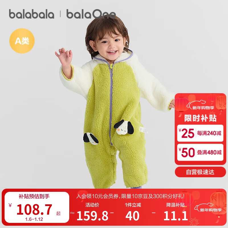 巴拉巴拉童装婴儿连体衣秋冬宝宝外出抱衣哈衣爬服珊瑚绒男童女童婴童衣服