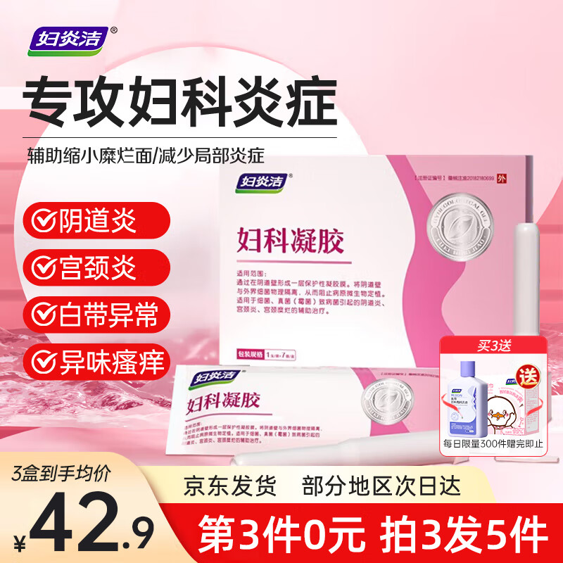 妇炎洁 医用妇科凝胶3g*7支抑菌宫颈炎糜烂阴道炎白带异味瘙痒私处护理 1盒装【体验装】