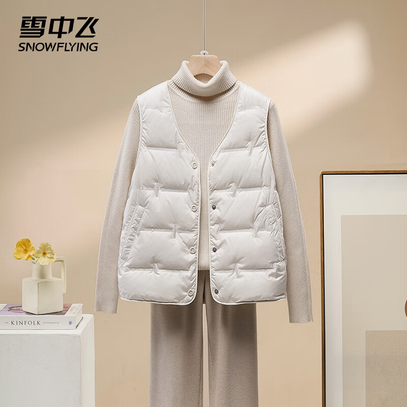 雪中飞25新款羽绒马甲秋冬内搭马夹冬季保暖背心外套254FYFL102 米杏色 L 110-130斤