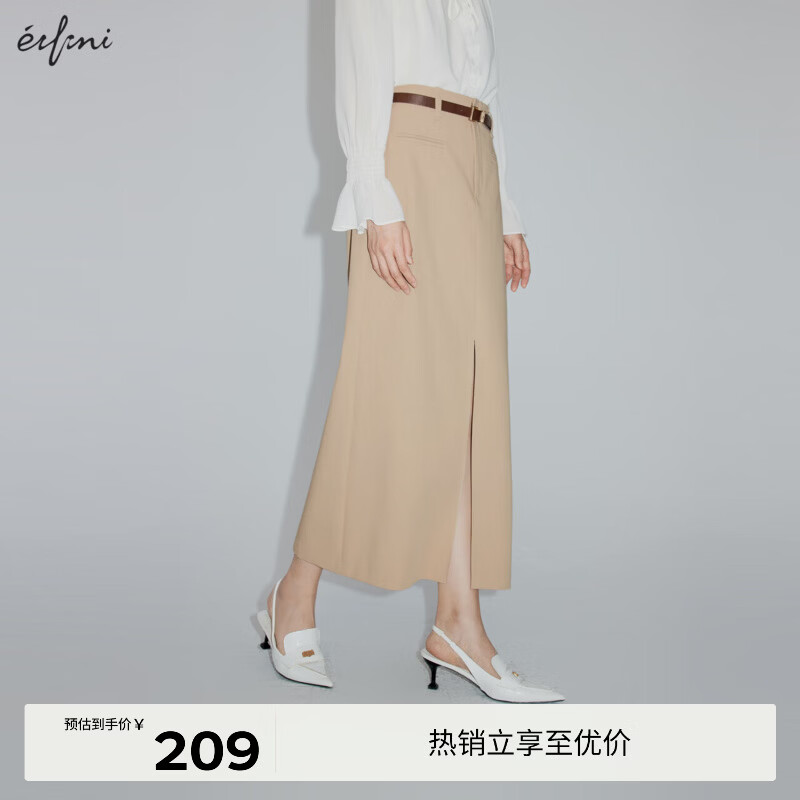 伊芙丽(eifini)【商场同款】伊芙丽通勤百搭休闲气质半身裙2024年秋季长款开叉裙 杏色 S 155/60A