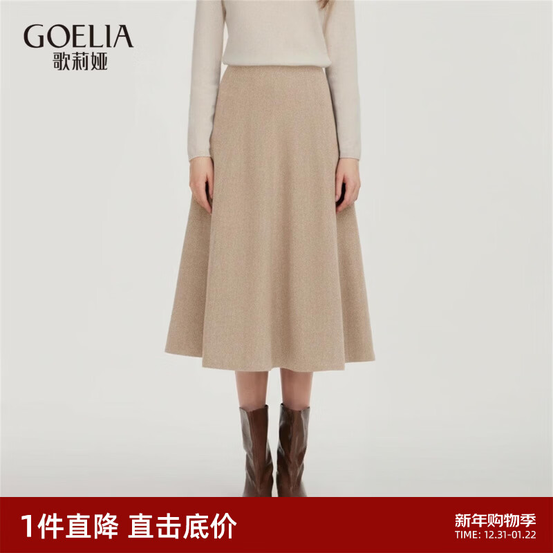 歌莉娅可水洗羊毛半身裙女秋冬新款独特八片裙高腰伞裙1EDL2D11C 15W甜杏色 S