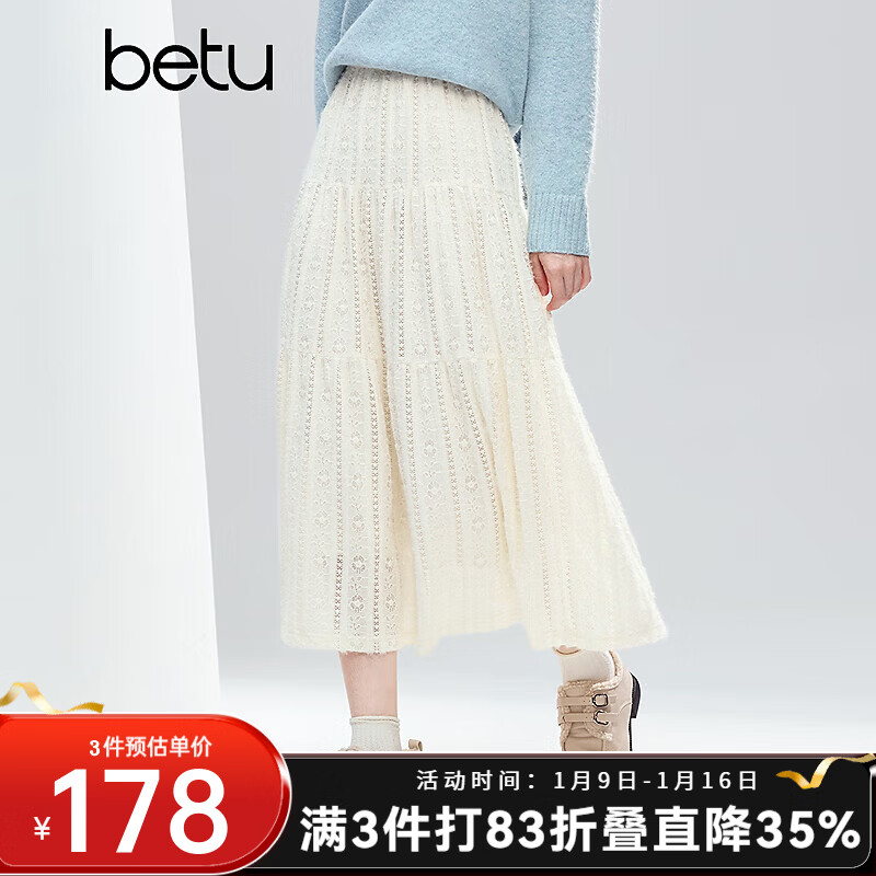 百图(betu)女装2025年冬季新款半身裙高级感麿毛蕾丝蛋糕裙裙子女2510T72 杏色 M