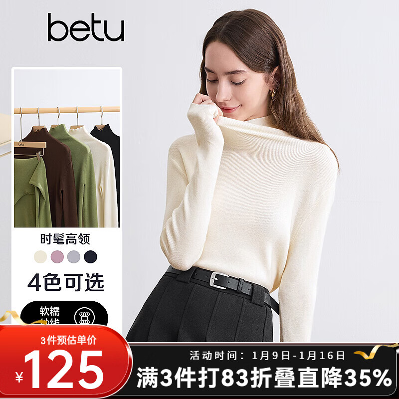 百图betu女装冬季新款毛衣高领多色内搭打底衫上衣女2410T26 浅杏色 L