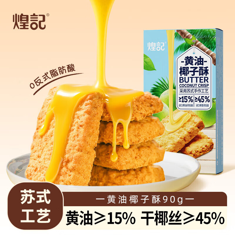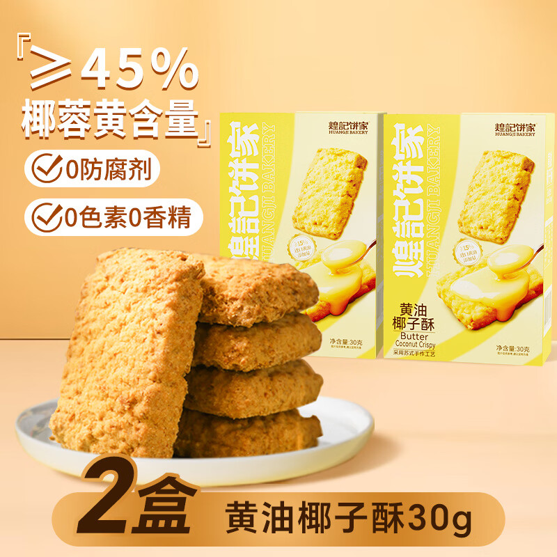 煌记黄油酥椰蓉椰子酥曲奇饼干咖啡孕妇小零食咸蛋黄下午茶糕点心解馋 黄油椰子酥30g*2盒(45%椰蓉+15%黄油)