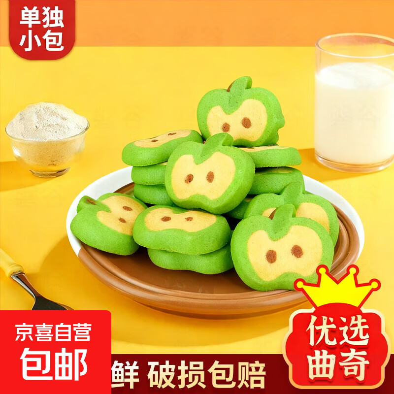 巧克力椰蓉小熊芒果挞壳独立包装曲奇饼干10g多口味学生休闲零食 【青苹果形曲奇】共5袋