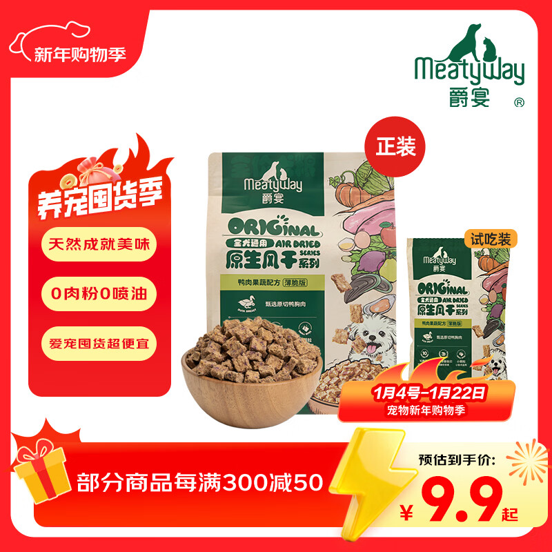 Meatyway爵宴狗粮全价主粮原生风干粮鸭肉味 大小型全犬粮通用 全价风干粮-鸭肉味 正装*3包