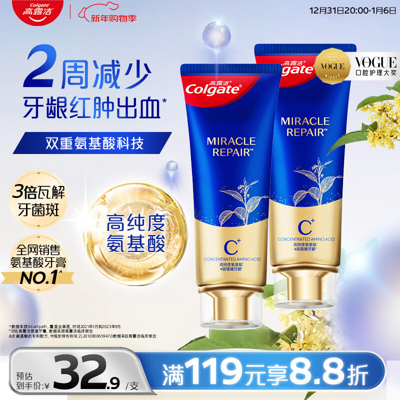 高露洁(Colgate)氨基酸牙膏90g*2桂花乌龙味牙龈萎l缩专用含氟牙膏护龈固齿去口臭