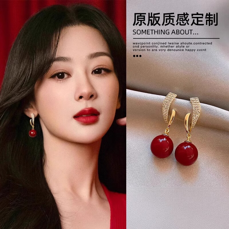 伊灿酒红色气质仿珍珠耳坠小众优雅名媛高级感耳钉2025年新款爆款耳饰 酒红色气质仿珍珠耳坠