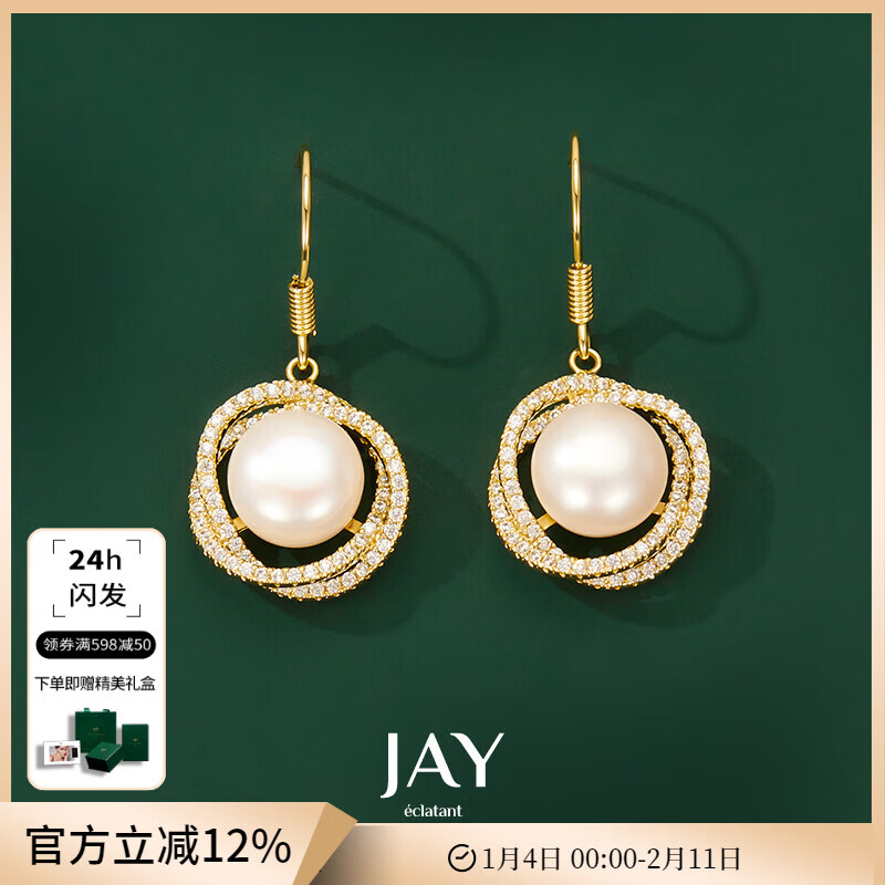 Jay珍珠耳环女大气法式网红耳坠复古耳饰送女友闺蜜新年礼物 秘境珍珠耳钩