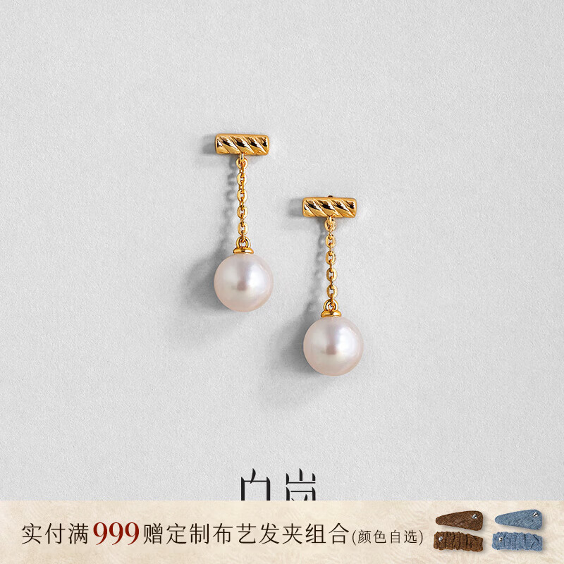 白岚一字珍珠耳钉淡水珍珠耳环精致高级感轻奢耳饰配饰新年礼物送老婆 一字珍珠耳坠