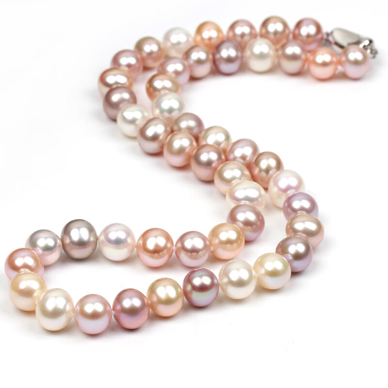 芯香 白粉橘紫混彩色 9-10mm8.5-9.5mm 淡水珍珠项链长款女 45cm