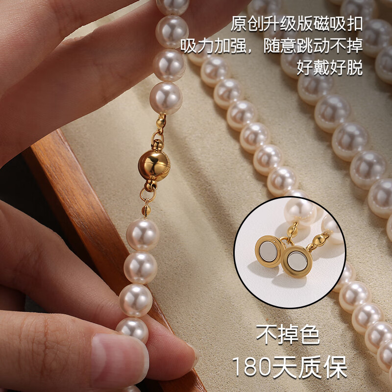 珍珠项链妈妈款施家女2025新款轻奢感颈链长款 选用磁吸扣设计,放心佩戴不易开