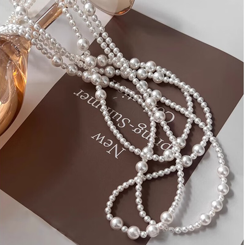 碧允高档大气双层珍珠项链长款毛衣链女2021年新款网红个性卫衣配饰 新款珍珠3层