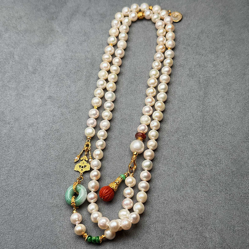 MHFDO淡水珍珠毛衣链长款设计感新中式国风复古a货翡翠平安扣颈 珍珠项链+证书