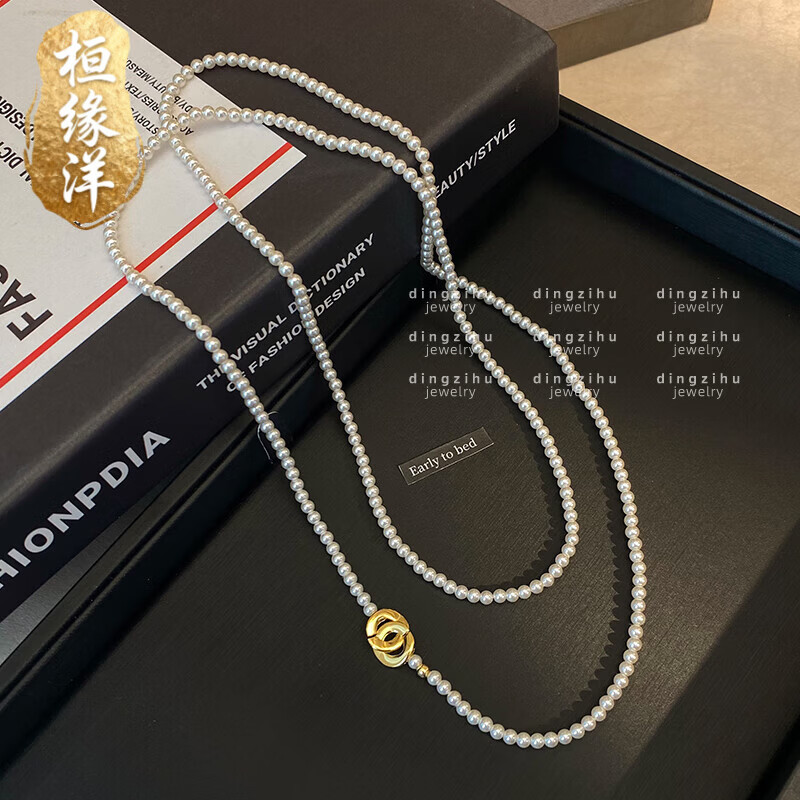禾佰畅珍珠项链长款小香风项链长款毛衣链气质珍珠毛衣项链百搭 香香珍珠山茶花项链