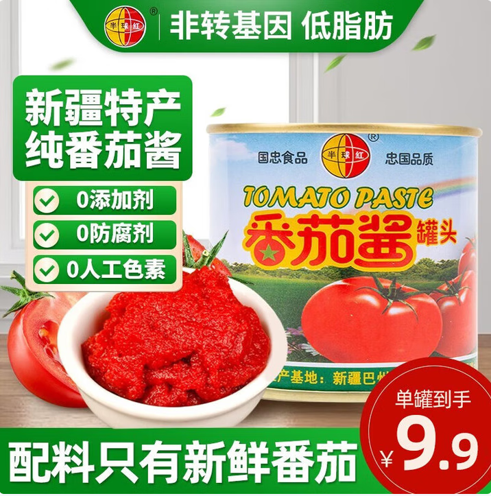 半球红新疆番茄酱无添加198g国忠西红柿膏儿童家用意面罐头