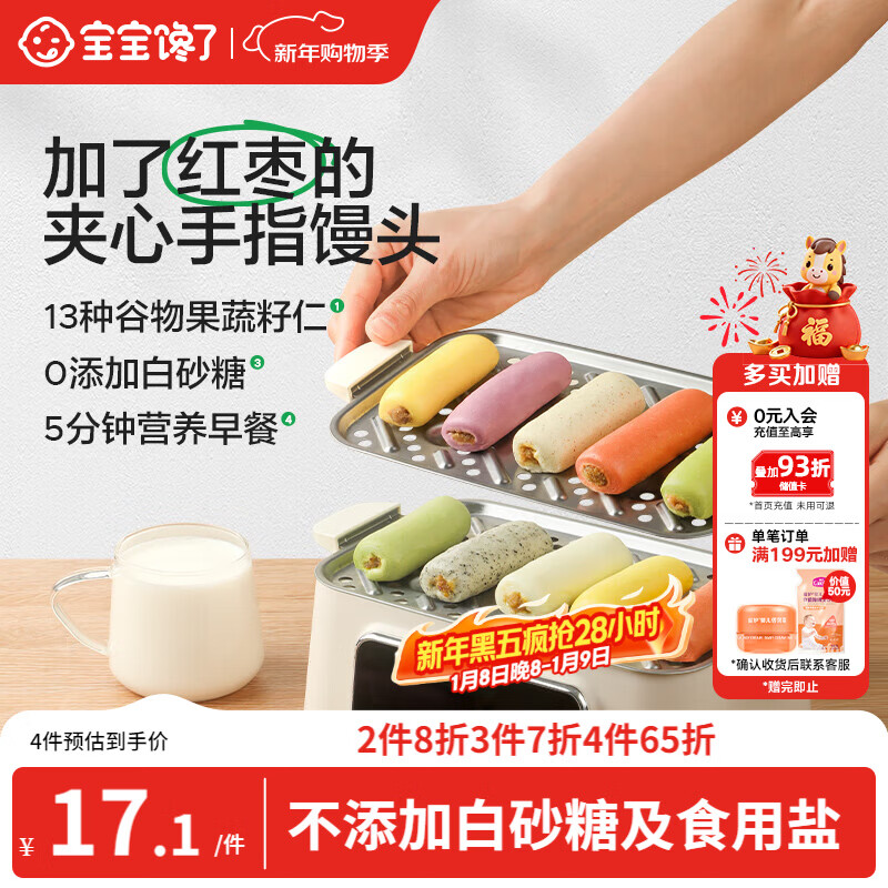 宝宝馋了红枣夹心手指馒头160g儿童早餐半成品无添加糖送宝宝婴幼儿辅食谱