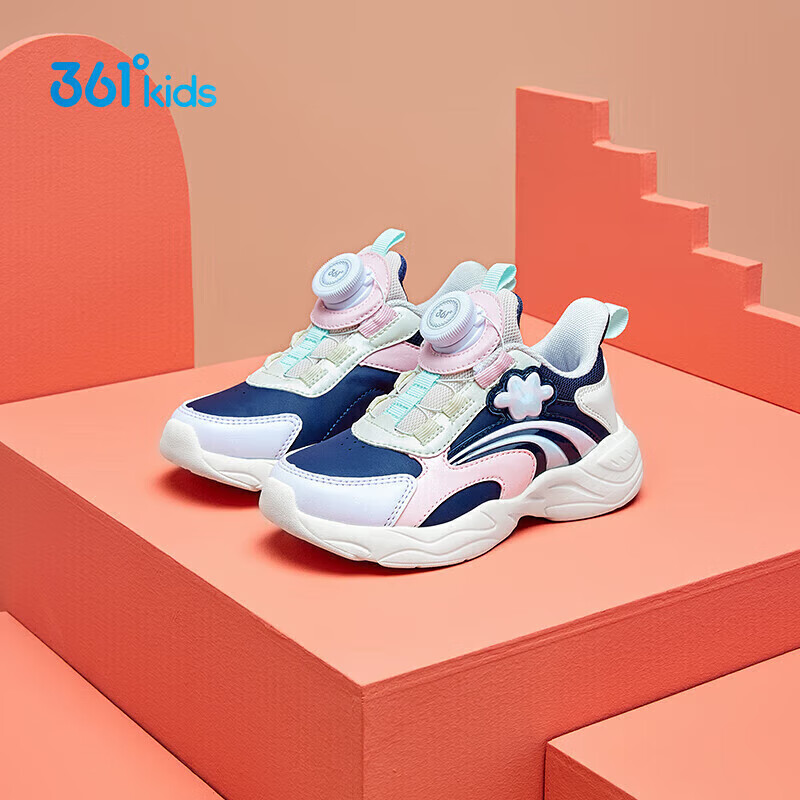 361°童鞋2025冬季小童女童旋纽扣跑鞋 蓝29