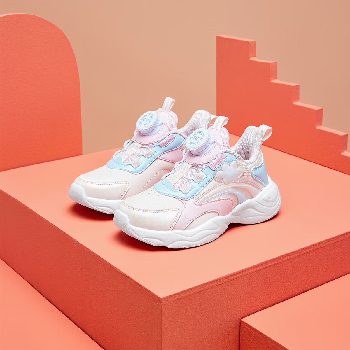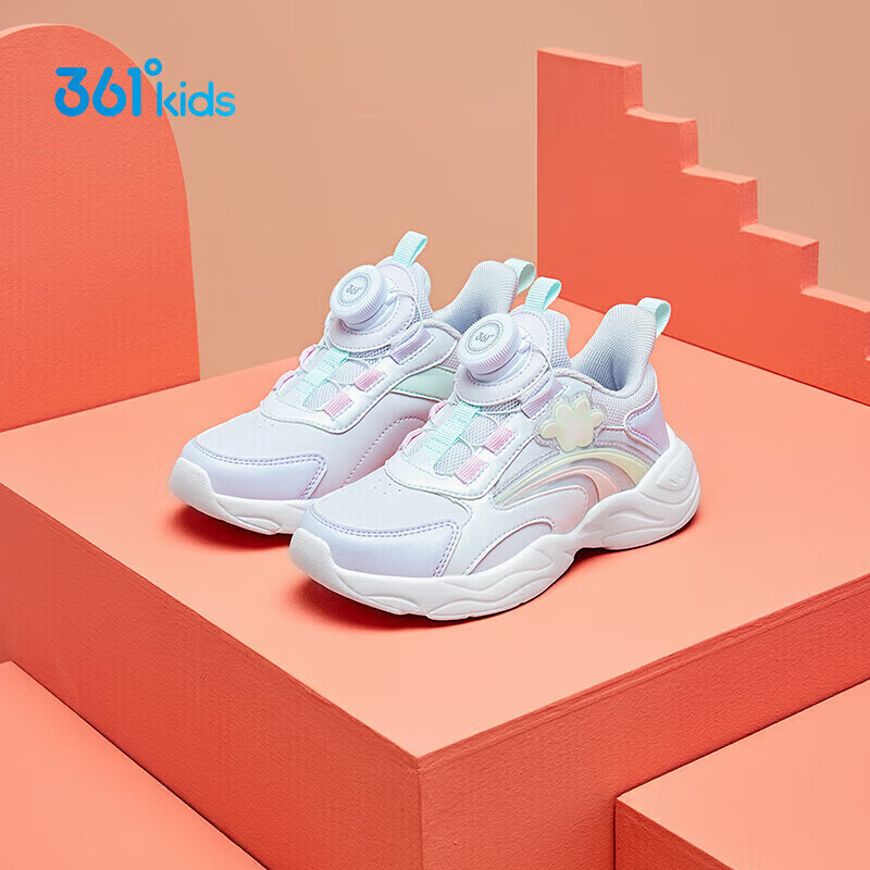 361°童鞋2025冬季小童女童旋纽扣跑鞋 白31