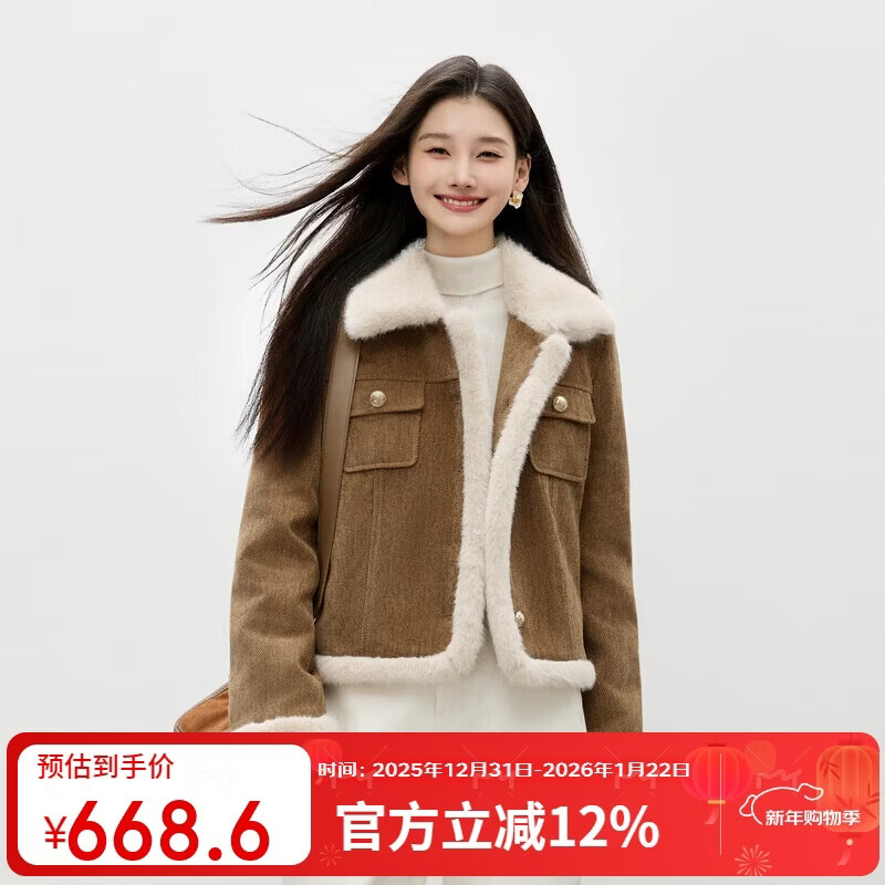 初语外套女2025冬季新款面包服毛绒翻领可露丽风复古咖色羽绒服 咖色 M