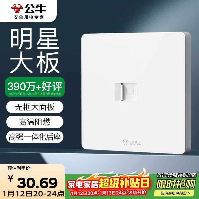 公牛(BULL)开关插座 一位电脑六类插座G12T102B象牙白暗装