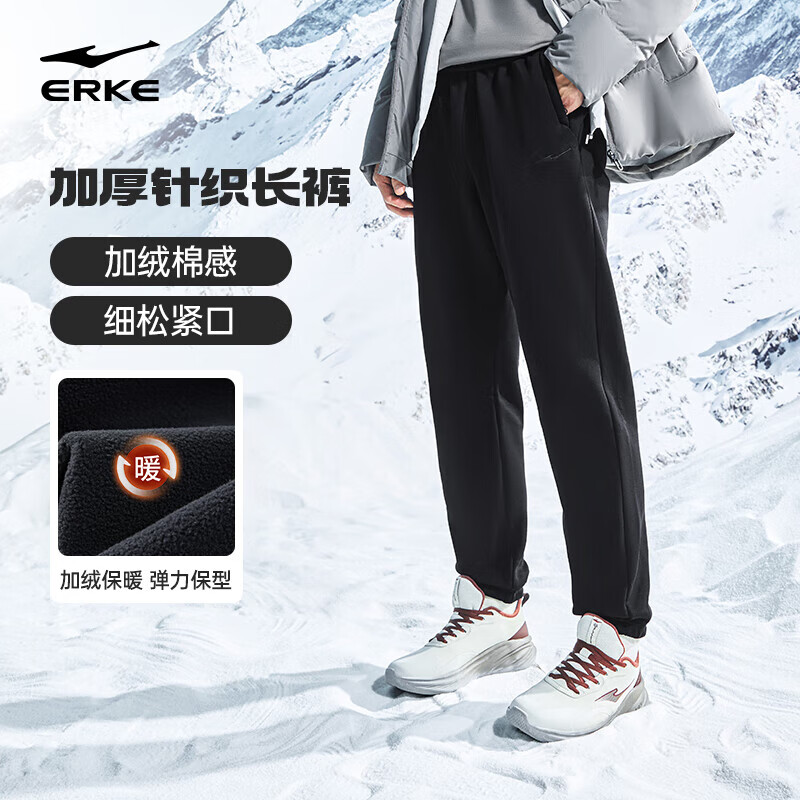 鸿星尔克运动裤男冬季加厚加绒针织长裤束脚收口跑步男裤保暖休闲裤子男