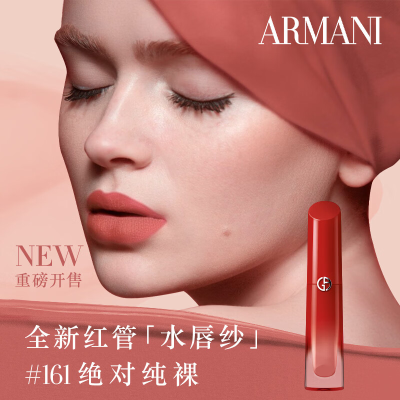 阿玛尼红管水唇纱唇釉#161绝对纯裸素颜显白口红不沾杯润唇膏新年礼物