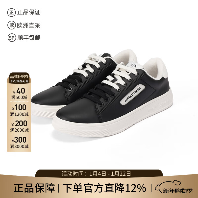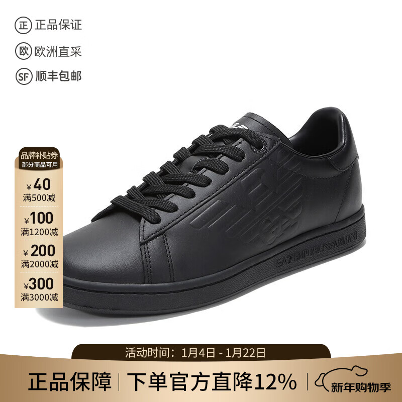 阿玛尼(ARMANI)EA 新品 男士牛皮革系带厚底休闲运动鞋小白鞋礼物男 X4X264 XF570 00002 黑色 39