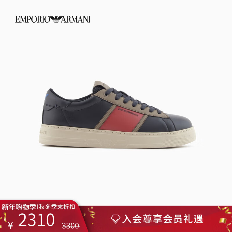 EMPORIO ARMANI/阿玛尼官方旗舰【新年礼物】新款男拼接复古休闲运动板鞋秋冬 MZ316-深蓝色 42