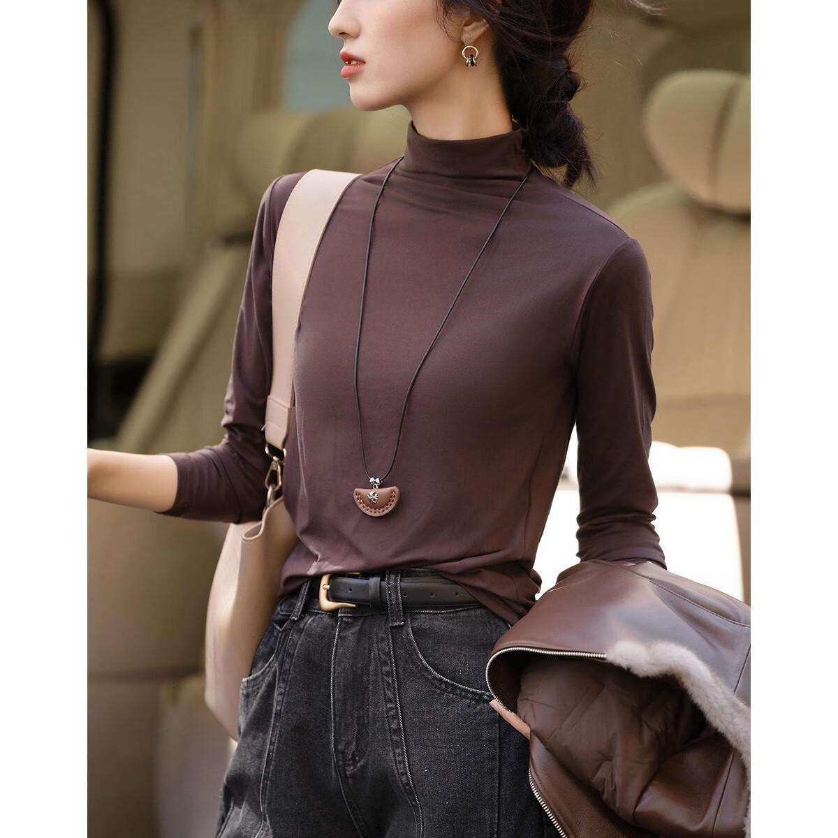 秋季小高领打底衫女新款春内搭体恤长袖t恤打底上衣女半高领8003 深棕色 XL