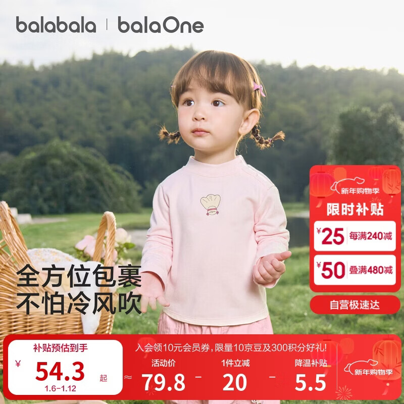 巴拉巴拉balaOne宝宝打底衫男童女童装2025冬季半高领t恤婴儿209425100201