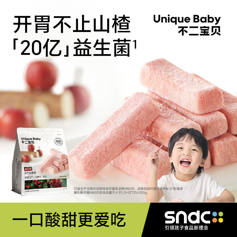 不二宝贝冻干山楂棒鸡内金水果果条片搭无添加宝宝婴儿幼儿童零食 【1袋 | 三重益生菌】冻干山楂条60g