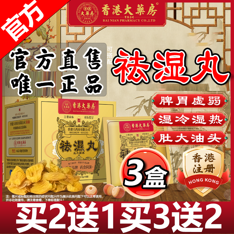 香港大药房有限公司祛湿丸无湿丸无湿轻排鸡内金去除湿气祛湿健脾养胃调湿气重伏湿膏 3盒装【肚大口臭舌苔白厚】买2送1