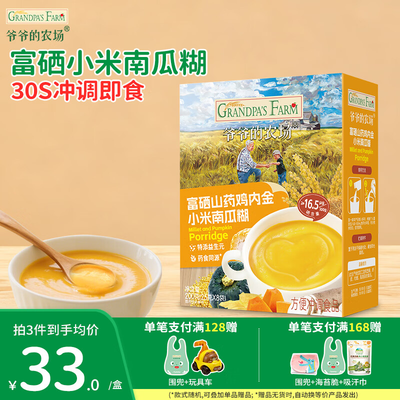 爷爷的农场富硒山药鸡内金小米南瓜糊 米糊米粉1-3岁 儿童早餐 辅食25g×8袋 富硒山药鸡内金小米南瓜糊 25g*8袋