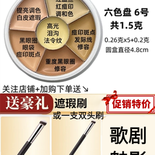 德国魅影歌剧魅影遮瑕膏小样中国限定三色脸部修容遮泪沟痘印分装盘1号6号 1号-盘 2.7g 6色 送刷