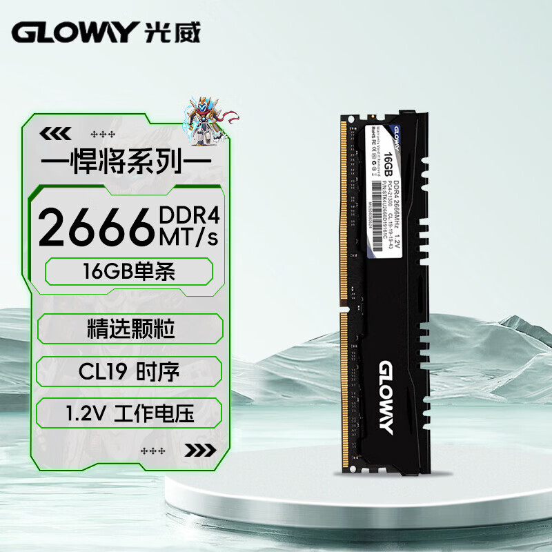 光威(Gloway)16GB DDR4 2666 台式机内存条 悍将 马甲条 精选颗粒 CL19