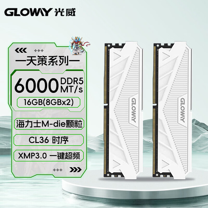 光威(Gloway)16GB(8GBx2) DDR5 6000 台式机内存条 天策 马甲条 海力士M-die CL36 皓月白