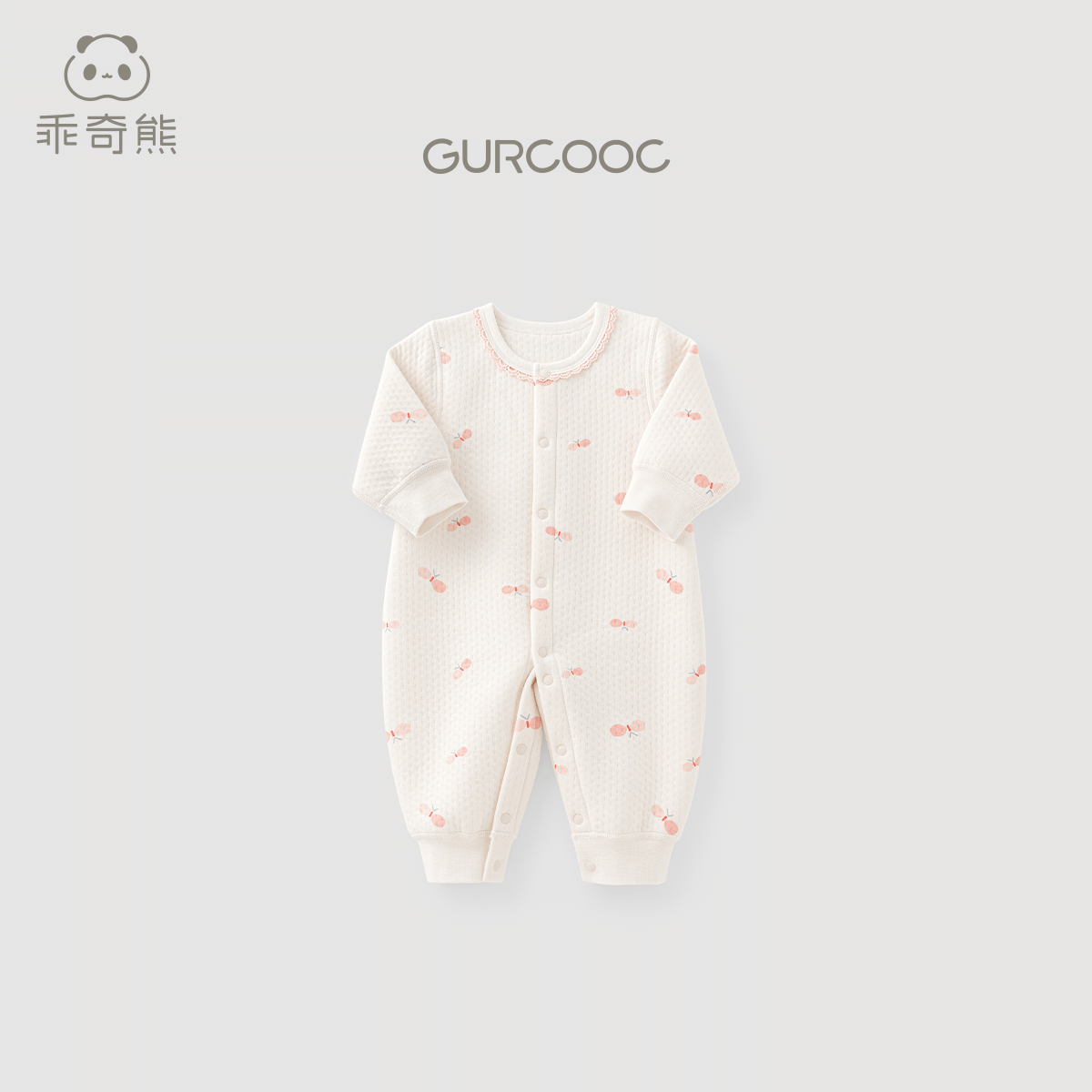 乖奇熊婴儿秋冬季夹丝棉保暖连体衣甜美长袖哈衣爬服女宝宝秋装睡衣服 奶白蝴蝶飞呀 90cm