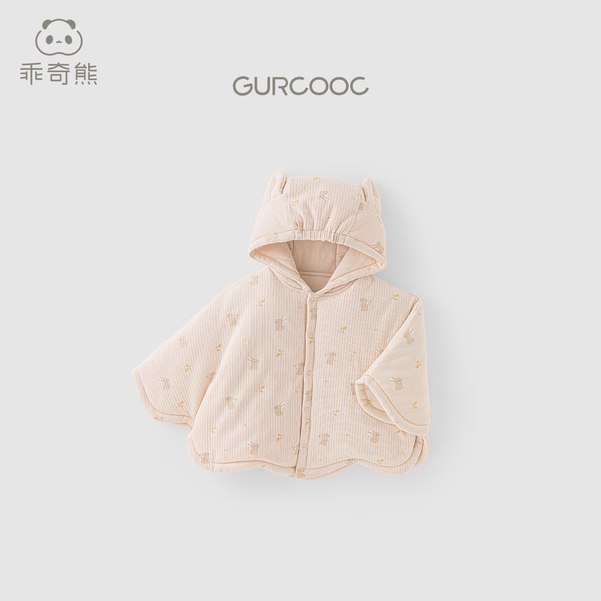 乖奇熊【暖护棉】女童夹棉斗篷秋冬季宝宝加厚抗菌外套婴幼外出保暖披风 藕荷粉萌耳闪闪 100