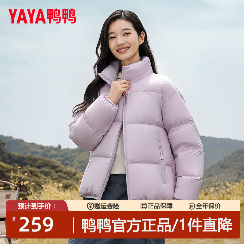 鸭鸭(YAYA)冬季通勤羽绒服情侣百搭时尚休闲秋冬新款保暖简约面包服防寒外套 云紫色 M 【115-135斤】