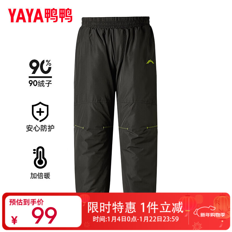 鸭鸭儿童羽绒裤男童2024冬季新款直筒裤加厚保暖中大童运动裤子WJ 黑色 170