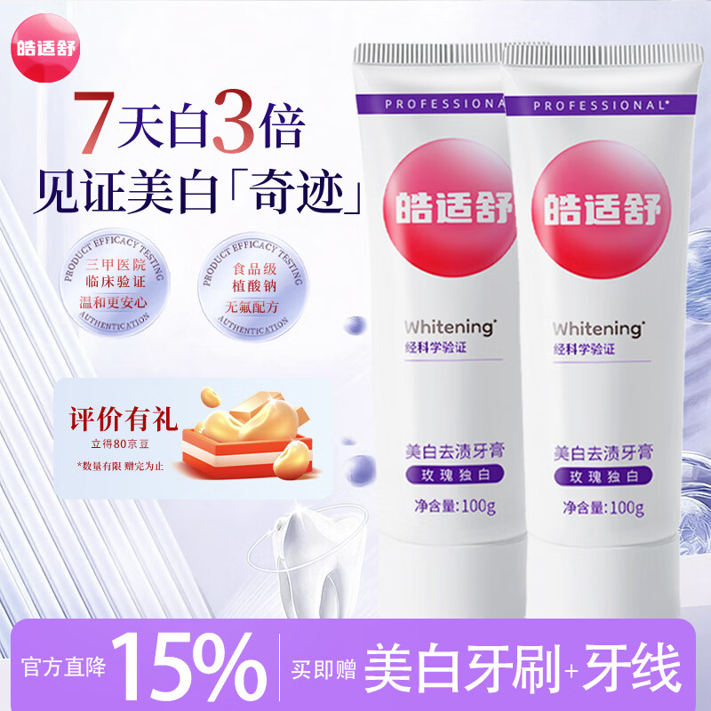 皓适舒美白牙膏去黄去渍去口臭去牙渍去烟渍牙垢官方正品牙刷7天白3倍 【到手6件】美白牙膏200g