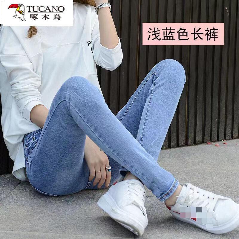 啄木鸟高腰牛仔裤女2025春秋新款高弹力紧身显瘦女士九分小脚铅笔裤长裤 715浅蓝色长裤(单裤) 25码(1尺8)