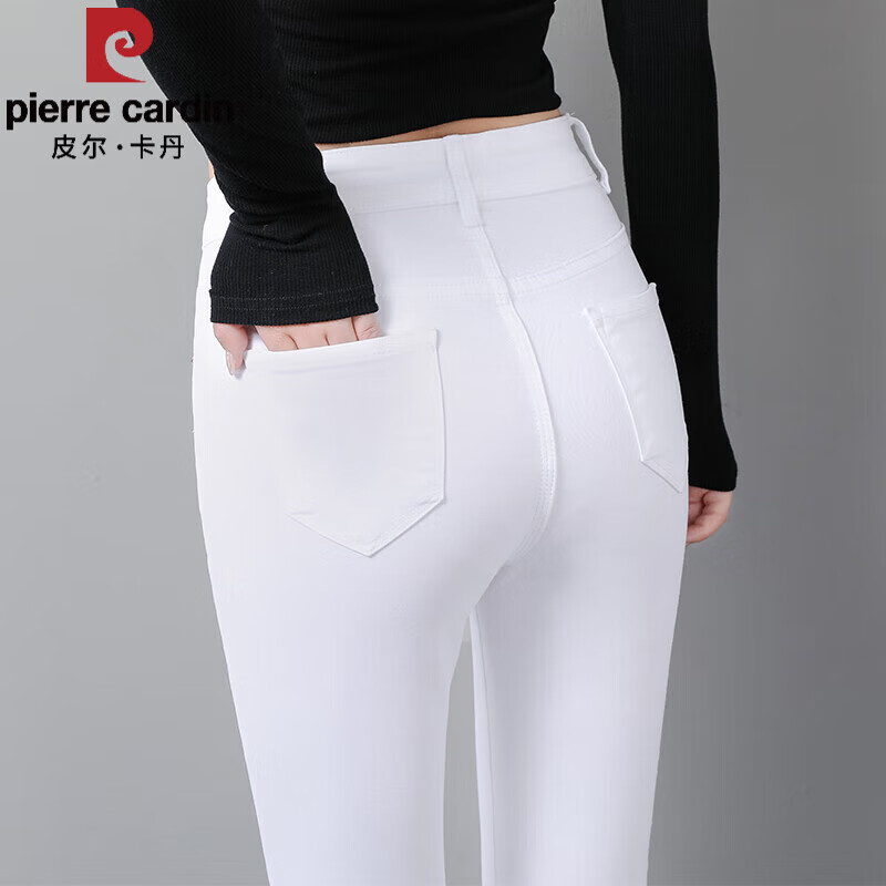 皮尔卡丹浅蓝色高腰牛仔裤女紧身小脚九分2026春秋新款显瘦白色薄款铅笔裤 白色 单裤 长裤 29 /2尺2参考115-124斤左右