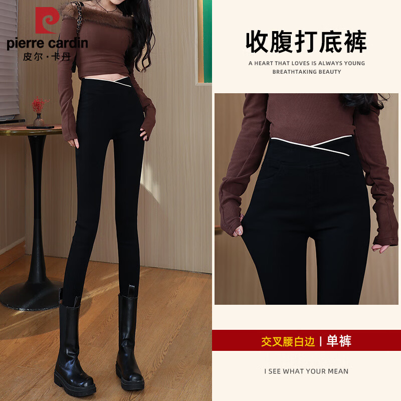 皮尔卡丹(pierre cardin)黑色打底裤女春秋薄款外穿高腰显瘦铅笔小脚裤2025新修身靴裤 黑色【单裤】 S