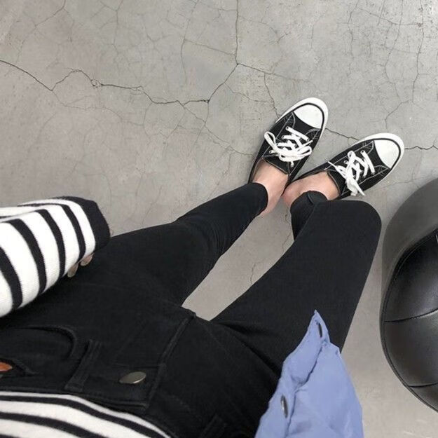 罗蒙(ROMON)牛仔裤女春秋2025新款女装韩版高腰弹力百搭显瘦小脚修身铅笔长裤 168黑色九分【 单裤】 28码 建议106-115斤